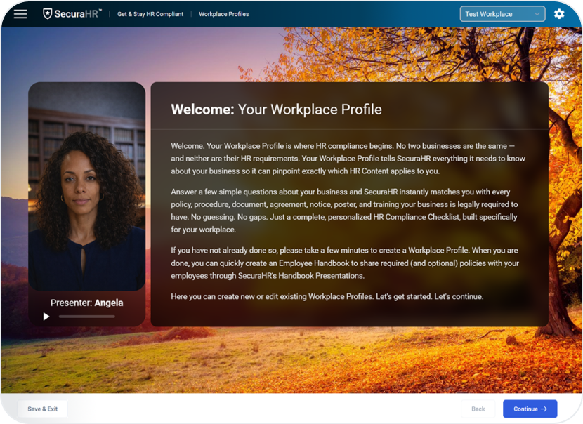 Follow an easy step by step compliance guide. Create your workplace profile and let SecuraHR™ create